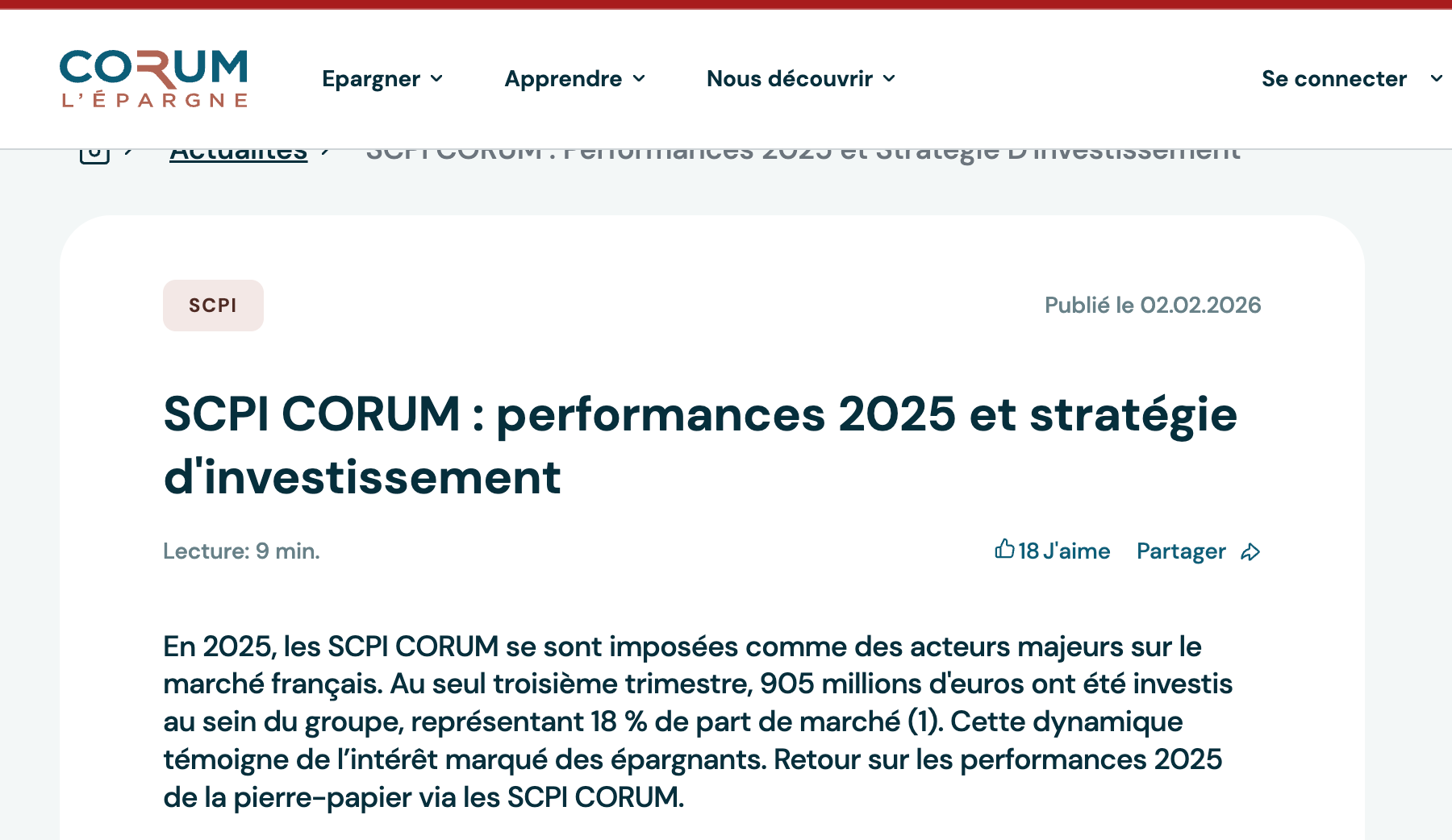 Communiqué de presse CORUM L’Épargne du 15 janvier 2026