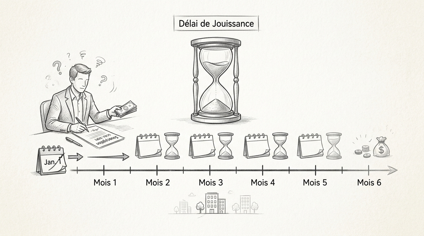 Le délai de jouissance est un coût caché que presque personne ne présente comme tel. Quand vous achetez des parts de SCPI, vous ne percevez pas vos premiers dividendes immédiatement. Ce délai varie de un à six mois selon les véhicules.