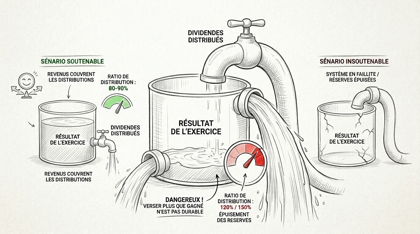 Le ratio de distribution est un indicateur critique que presque personne ne regarde. Il mesure le rapport entre le dividende distribué et le résultat de l’exercice.