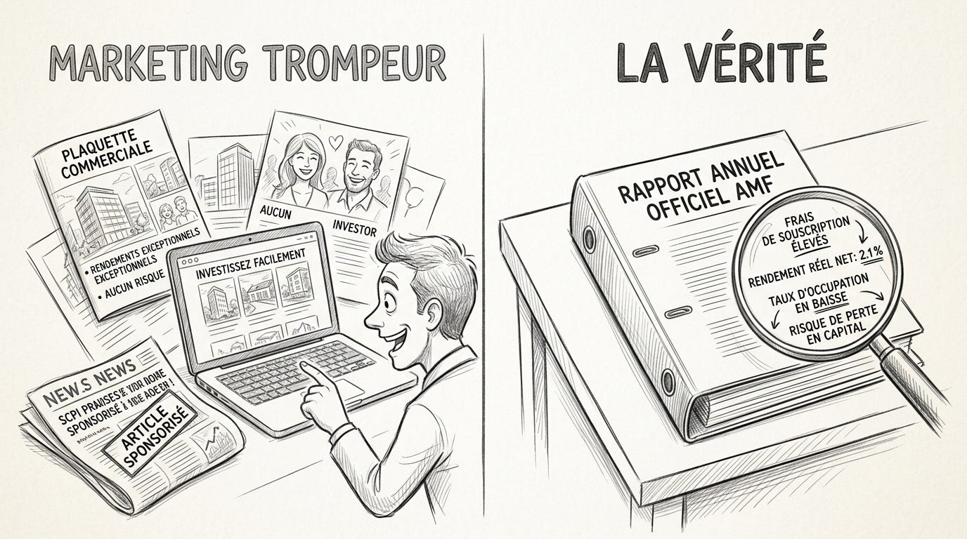 Ce n’est pas une accusation gratuite. C’est le constat que je dresse analyse après analyse, quand je décortique les rapports annuels des SCPI pour mon audience.