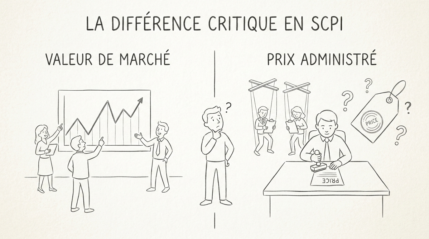 C’est peut-être l’erreur la plus coûteuse de toutes. Le prix de part d’une SCPI n’est pas une valeur de marché. C’est une valeur administrée.