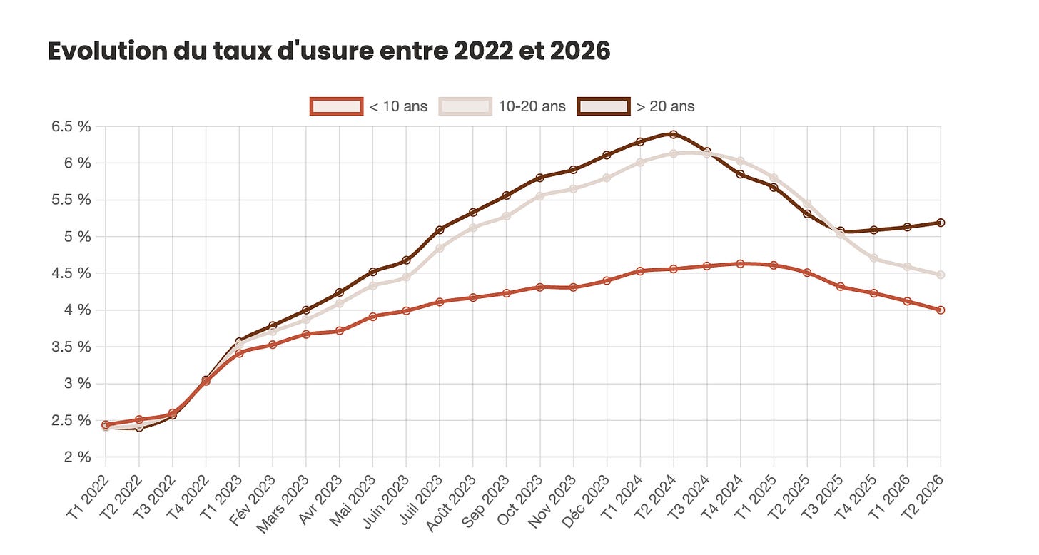 En 2022-2023, ce mécanisme a bloqué des milliers de dossiers : les taux remontaient vite, mais le taux d’usure était recalculé trop lentement des gens solvables se retrouvaient refusés non pas parce qu’ils ne pouvaient pas rembourser, mais parce que le TAEG dépassait ce plafond légal.